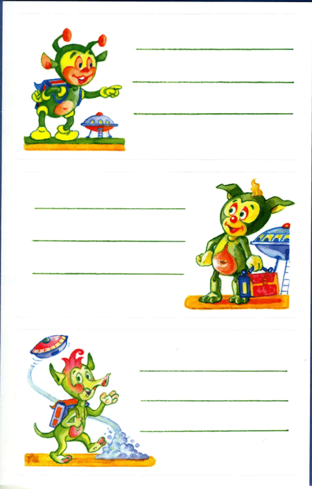Vorgestaltete Buchetiketten aus beschriftbarem Papier.