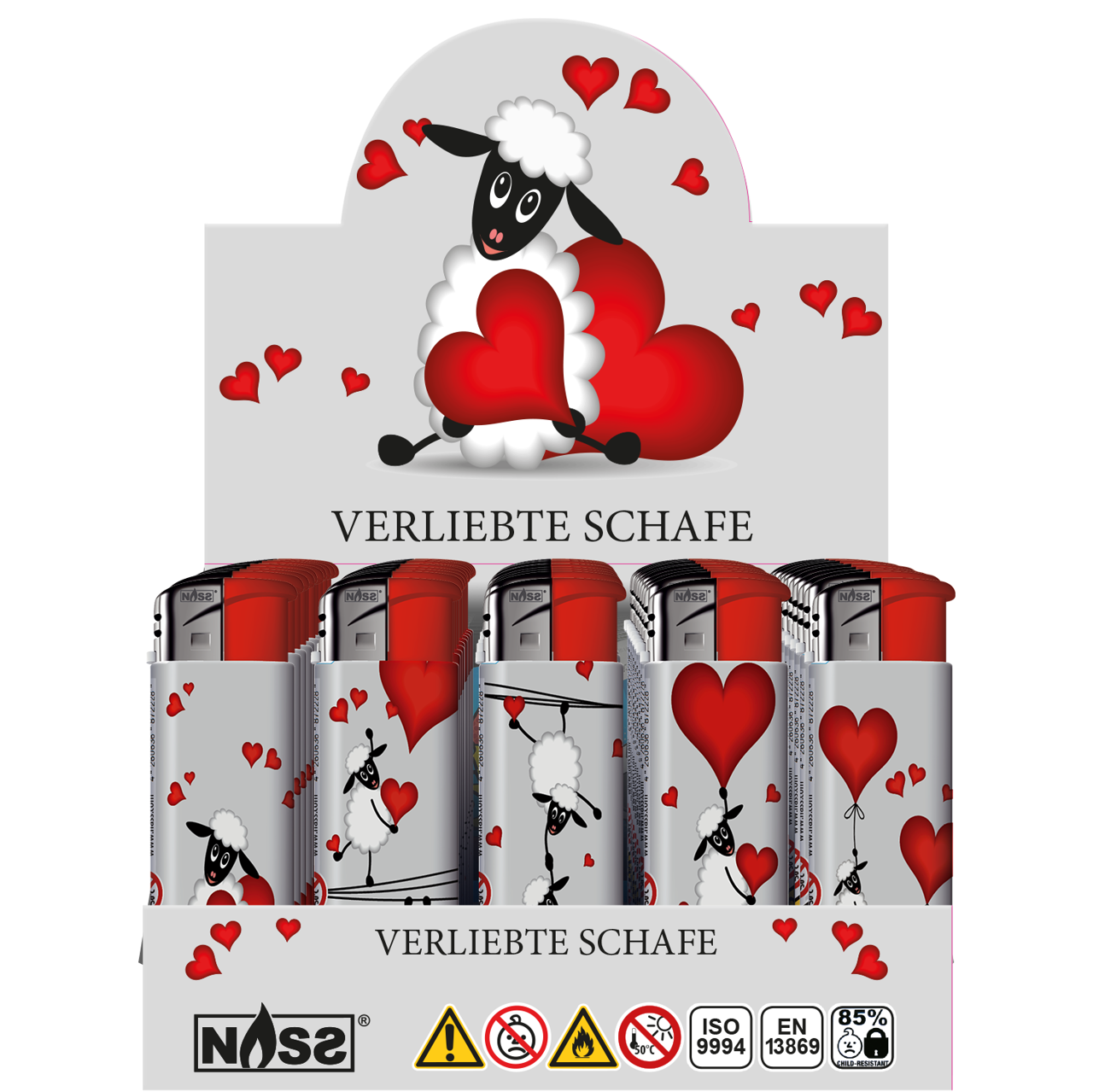 Markenfeuerzeug Love Motiv Serie "verliebte Schafe".
