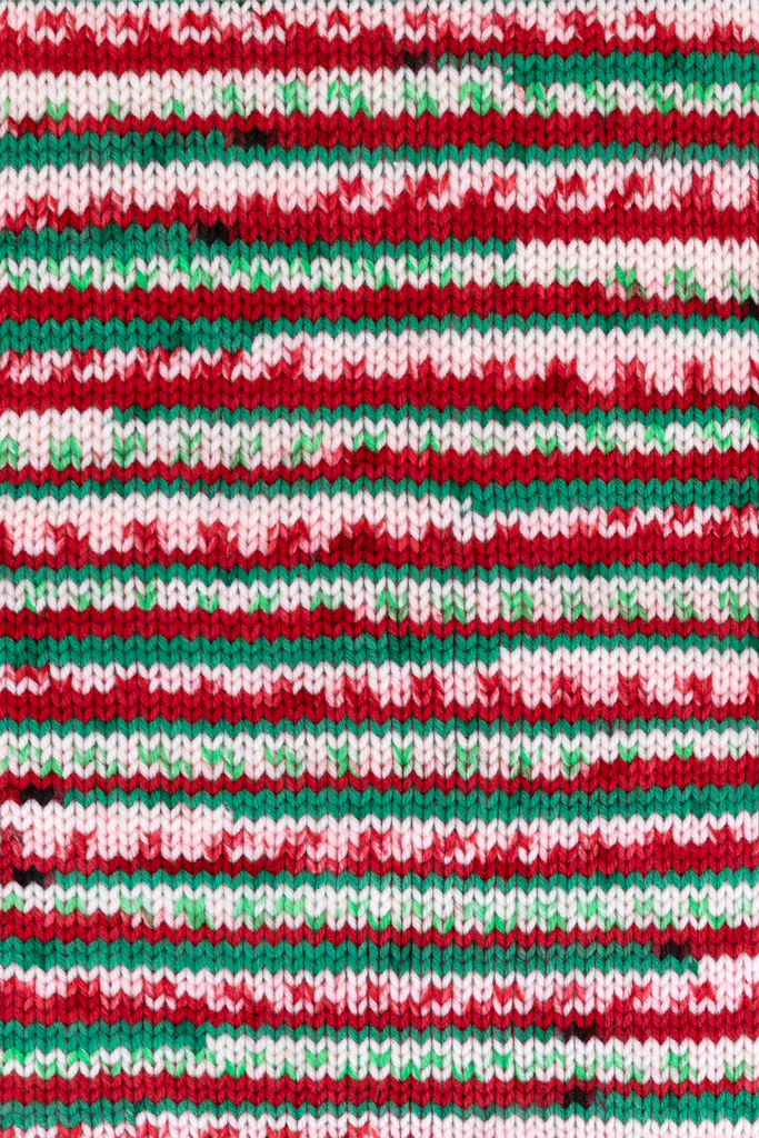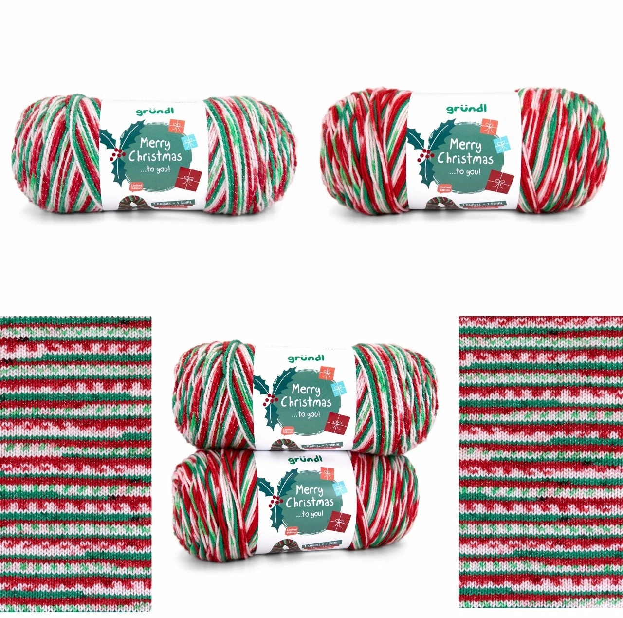Die gründl "Merry Christmas … to you!" Weihnachtswolle (333 g) bringt festliche Stimmung auf die Nadeln. Die Wolle kombiniert zwei Varianten in den Farben weiß, grün und rot – einmal aus 100 % Polyacryl sowie einmal mit elegantem Silberfaden aus 98,5 % Polyacryl und 1,5 % metallisiertem Polyester. Diese Farben passen perfekt zu traditionellen Weihnachtsdekorationen und -projekten. Auf der Innenseite der Banderole findest du außerdem eine Anleitung, mit der du aus nur einem Knäuel einen stylischen Weihnachtsschal zaubern kannst.