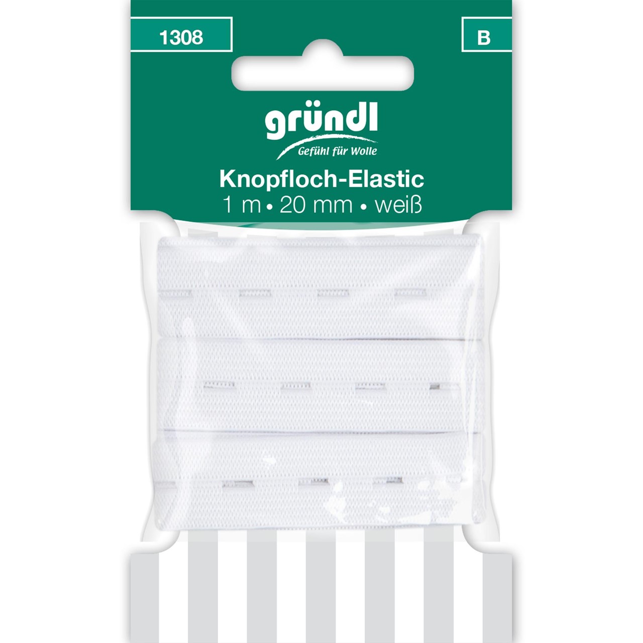 GRÜNDL Knopfloch-Elastikband weiß 20 mm, 1 m