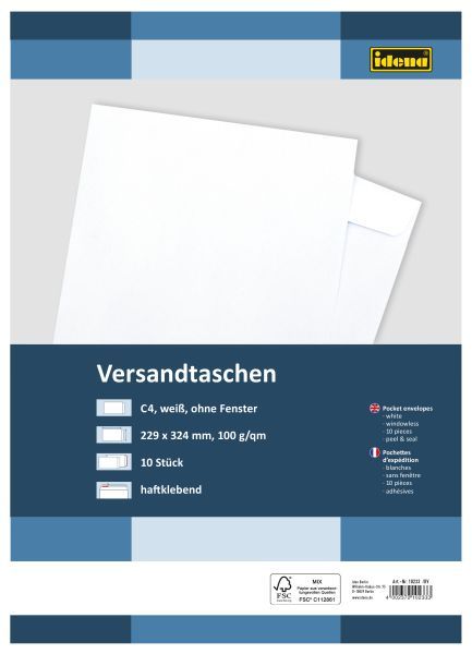 Versandtasche C4 ohne Fenster weiss, haftklebend, 10 Stück
