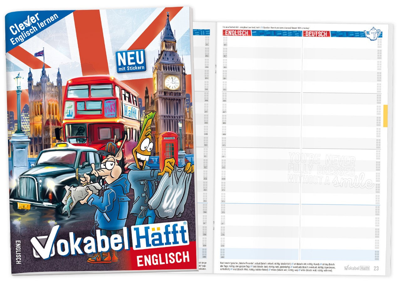 Die richtige Motivation zum Sprachen-Lernen kommt mit dem komplett neuen und 4-farbigem Englisch-Vokabel-Häfft! Auf 64 Seiten tummeln sich Infos über Kultur, Umgangssprache, Landkarte, Grammatik, Spiele, Sprüche und Comics mit Brot & Schwein, rund um den großen Vokabelteil mit innovativem Lernkontrollsystem!